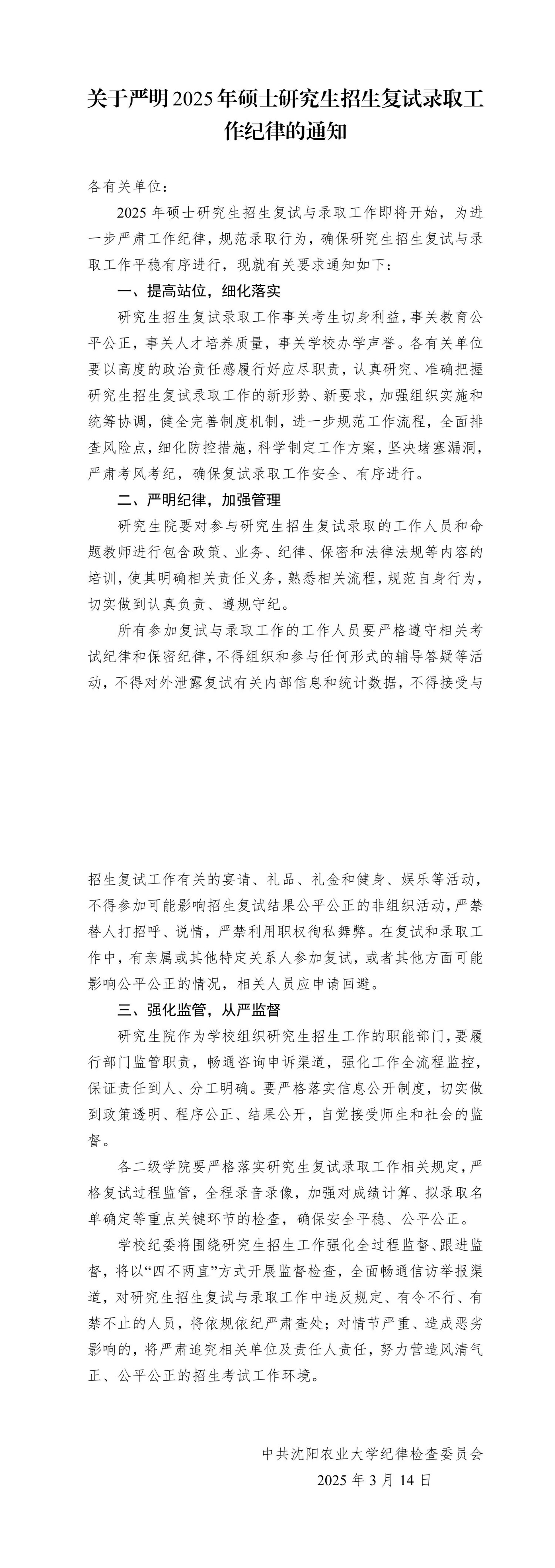 关于严明2025年硕士研究生招生复试录取工作纪律的通知
