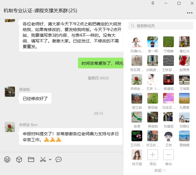 随着系统“提交”按钮的点击确认,星空登录入口_星空(中国)319会议室瞬间爆发出热烈欢呼。历经56天昼夜奋战,星空登录入口_星空(中国)机械设计制造及其自动化专业工程教育专业认证申请材料于30日晚20:55分成功提交,目前状态显示为“等待认证协会审核申请材料并分配给专委会”,标志着该专业向工程教育质量国际标准迈出关键一步。