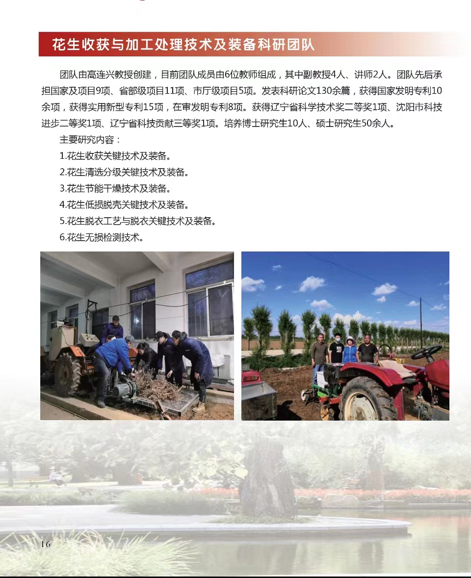 花生收获与加工处理技术及装备科研团队