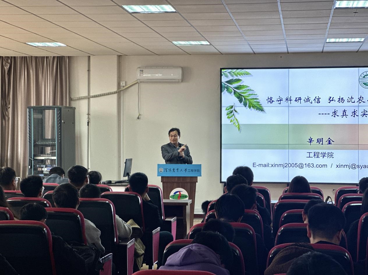 12月8日下午,星空登录入口_星空(中国)在501会议室举办“研究生科研诚信与学术道德”主题讲座。本次讲座由学院博士生导师、农业机械化工程学科带头人辛明金教授主讲。研究生辅导员董瀚辰、王立彬老师,星空登录入口_星空(中国)全体一年级研究生同学参加了本次讲座。